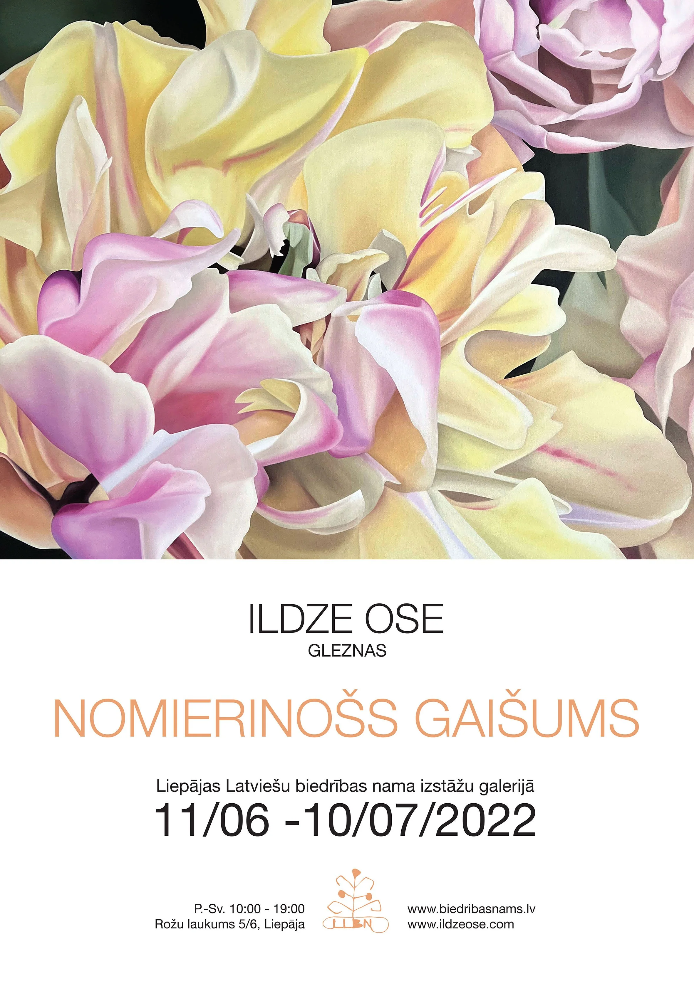 Ildze Ose glezno ziedus hiperreālisma stilā. Viņas darbos saplūst māksla un dizains – izsvērta kompozīcija, grafiski raksti kombinācijā ar dabas tēliem un formām. Kā saka pati māksliniece – svarīgi šajos trauksmainajos laikos ieraudzīt Visumu ziedā un glabāt tā nomierinošo gaišumu ikdienā.